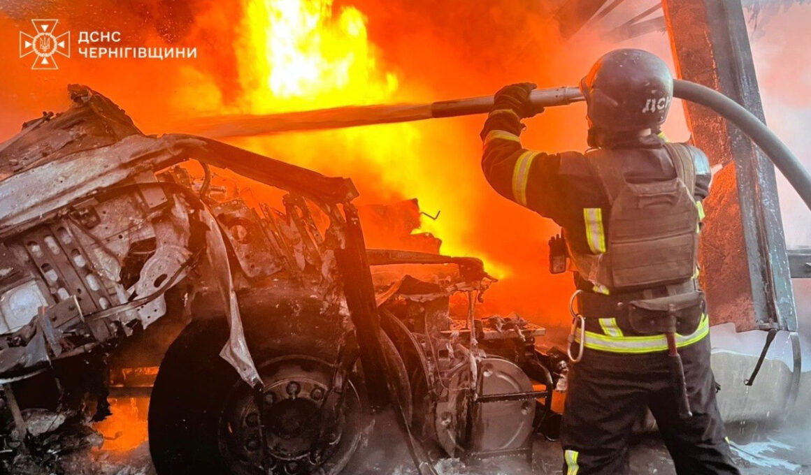 У ніч на 7 квітня російські окупанти завдали удару по цивільному підприємству в Харківській області, внаслідок чого виникла пожежа. Цього ж вечора ворог атакував автостоянку на Чернігівщині, де згоріли кілька вантажних автомобілів. За інформацією Державної служби з надзвичайних ситуацій, внаслідок атаки безпілотником по одному з населених пунктів Харківського району сталося займання на підприємстві. Рятувальники наразі працюють над ліквідацією пожежі, проте інформації про постраждалих не надходило. Крім того, у ДСНС зазначили, що вчора ввечері рятувальники ліквідували ще одну масштабну пожежу на Чернігівщині, спричинену ворожим ударом. БпЛА вразив приватну автостоянку в Корюківському районі, внаслідок чого загорілися три вантажні автомобілі. Ще кілька транспортних засобів отримали пошкодження. За попередніми даними, обійшлося без постраждалих. Ці інциденти підкреслюють триваючу загрозу від російських атак на цивільну інфраструктуру й потребу в посиленні заходів безпеки в регіонах, де здійснюються такі атаки.